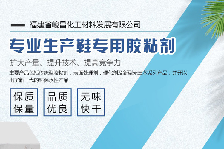 福建省峻昌化工材料發(fā)展有限公司總部設(shè)在中國(guó)鞋鄉(xiāng)——晉江。為更好、更方便服務(wù)廣大客戶,我司在廣東江門及福建均設(shè)有先進(jìn)的PU膠生產(chǎn)基地,歡迎廣大同行前來(lái)我司灌裝或批發(fā)銷售。公司是一家中外合資,面向亞太地區(qū)從事研究,生產(chǎn)銷售鞋用粘膠10多年的專業(yè)公司。從國(guó)外引進(jìn)生產(chǎn)能力為數(shù)萬(wàn)噸的全套先進(jìn)生產(chǎn),檢驗(yàn)設(shè)備,與德國(guó)Bayer,日本DENKA及美國(guó),西班牙等其它海外公司有著密切的原材料及技術(shù)合作。公司主要產(chǎn)品包括傳統(tǒng)型膠粘劑,表面處理劑,硬化劑及新型無(wú)三苯系列產(chǎn)品,并開(kāi)以出了新一代的環(huán)保水性產(chǎn)品。供應(yīng)國(guó)內(nèi)外鞋業(yè),手提箱包及建筑工程單位使用。公司始終保持產(chǎn)品的良好品質(zhì)及專業(yè)特性,并倍受廣大客戶好評(píng)。